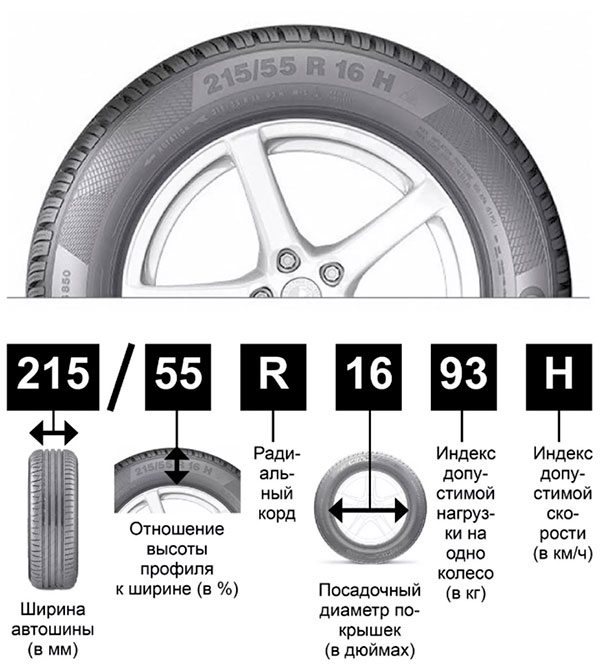 Типоразмер уже установленных на автомобиле шин вы можете посмотреть на боковине покрышки.